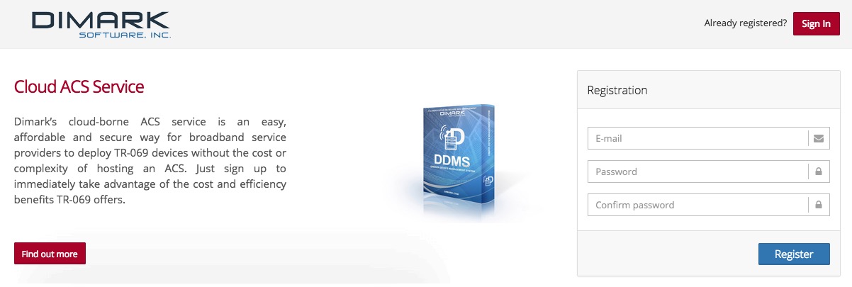 With a browser, go to https://acs.dimark.com/registration and register.