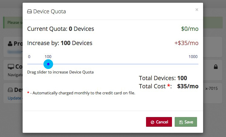 Finally, set a Device Quota, which is the number of devices you'll be managing to start.You can add more at any time.